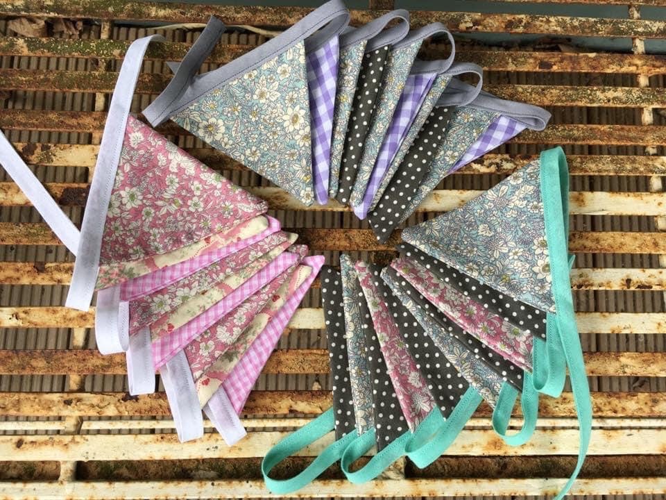 Bunting made to order 3 metres of lovely quality double sided handmade bunting. Please specify colours when ordering, Various styles of fabric are available. Mini Bunting also available £20